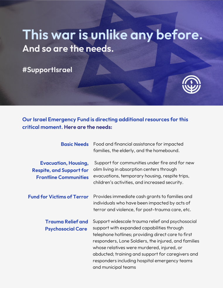 Updates from Jewish Federations of North America on the Current Situation in Israel: