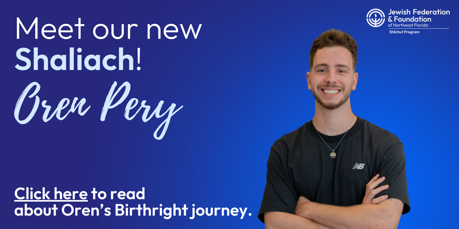 In Jacksonville, the Shlichut program returned in 2016 after a more than quarter century hiatus thanks to a partnership between Federation, the Jewish Community Alliance and a generous contribution from a private donor in the community. The Shaliach works with a large variety of Jewish agencies around the community, including the different Synagogues and schools. As part of their work here in Northeast Florida, the Shaliach conducts different programs, lectures and educational opportunities about Israel, including a community-wide celebration of Israel’s Independence Day known as Yom Ha’atzmaut.