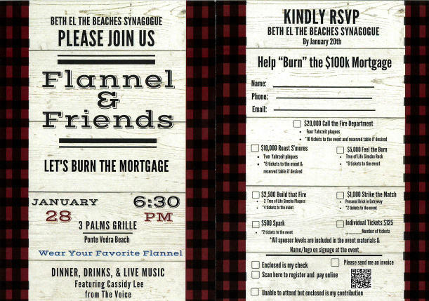 Beth El will hold their Annual Synagogue Gala Event on January 28, 2023, at 6:30pm to celebrate Beth El and its members. Wear your favorite flannel - there will be dinner, drinks & live music by Cassidy Lee from The Voice. We hope you can join in the New Year. Please contact Beth El for more information.