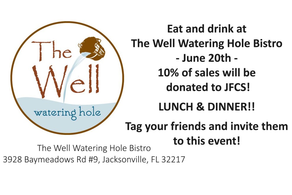 The Well Watering Hole Bistro gives back to the community by selecting a featured charity of every month. JFCS is The Well's featured charity for the month of June!!!